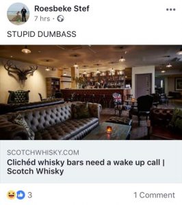 “Love your style” [I think he meant writing rather than dress sense] – Aidy Smith, The Three Drinkers